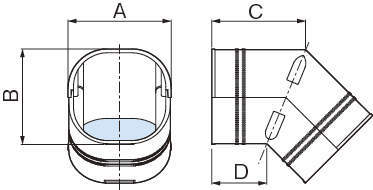 立面90°曲がりエルボ継手です。