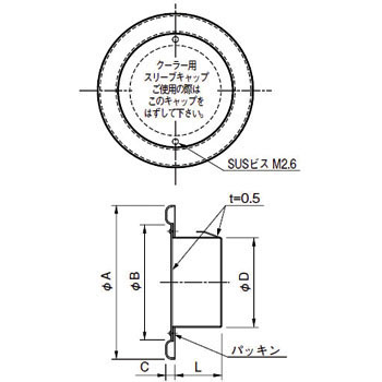 クーラーキャップ75φSUS304 ステンレス製 フタねじ2本止め