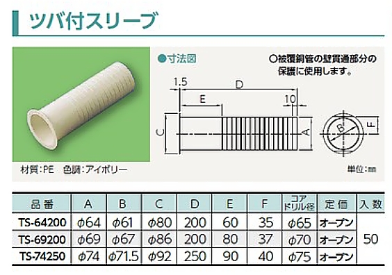 【関東器材/KANTO】 TS-64200 ツバ付スリーブ φ64